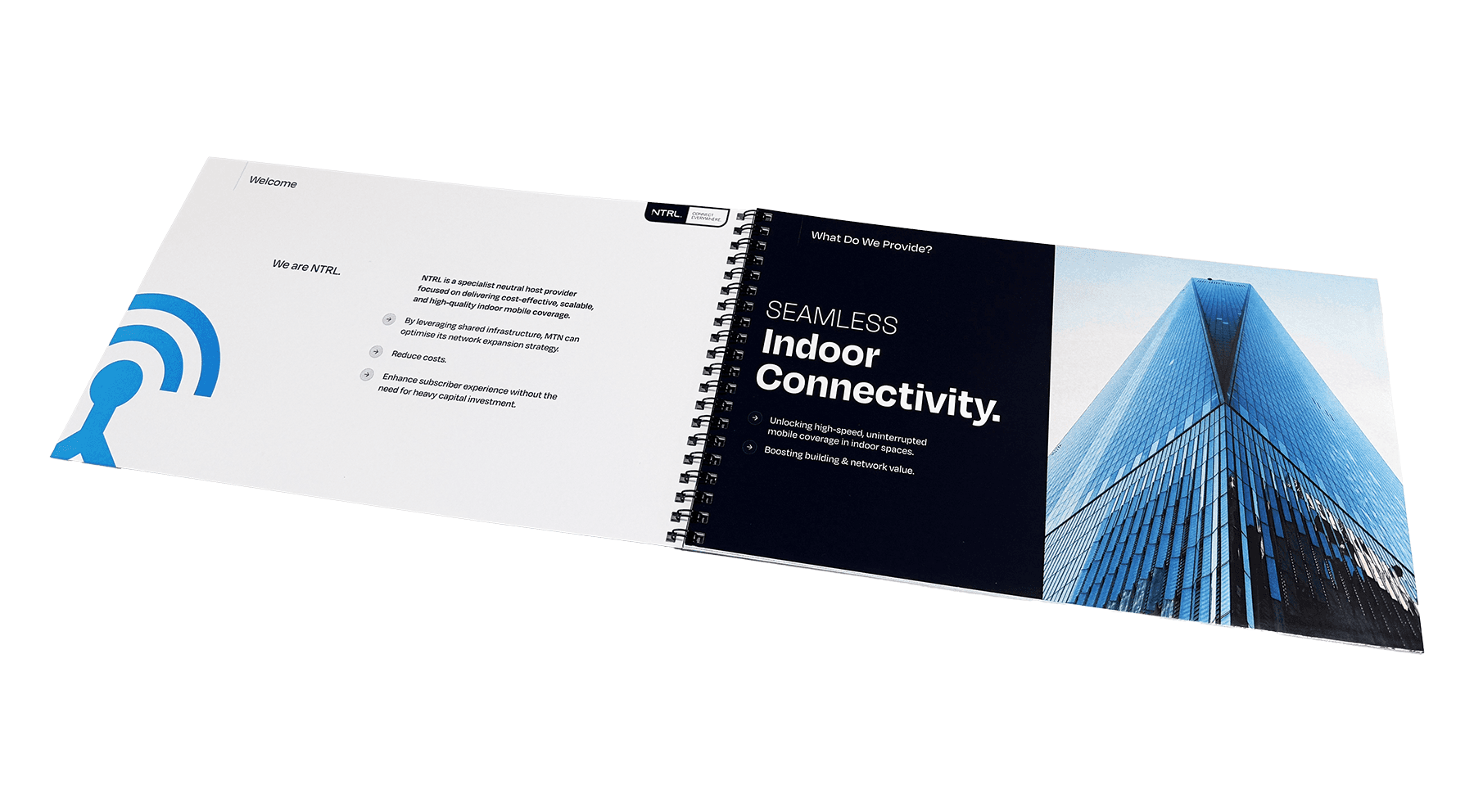 NTRL is a communications infrastructure provider delivering indoor mobile coverage as a service. The company wanted to launch their world-class product and service in a message that was clear, concise and approachable; a message and visual identity that carried through consistently across all of their brand assets - physical and digital.